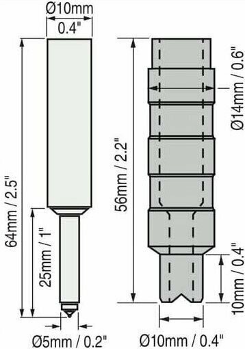 Die geraden N0S-Mikrosonden verfügen über einen Schnellwechsel-Adapter, der sie in Konstantdrucksonden verwandelt und so die Ausrichtung an kleinen, flachen oder gekrümmten Teilen ermöglicht. Dieser Adapter wird durch eine Feder in Position gehalten und kann bei Nichtgebrauch einfach von der Sonde abgenommen werden.