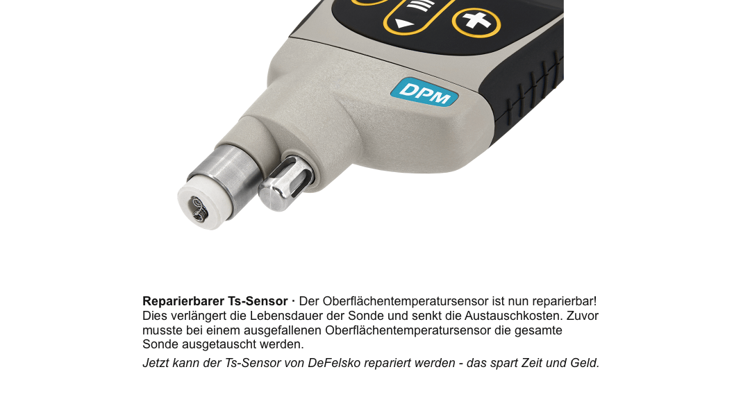 - Jetzt kann der Ts-Sensor repariert werden - das spart Zeit und Geld. Der Oberflächentemperatursensor ist nun reparierbar! Dies verlängert die Lebensdauer der Sonde und senkt die Austauschkosten. Zuvor musste bei einem ausgefallenen Oberflachentemperatursensor die gesamte Sonde ausgetauscht werden.